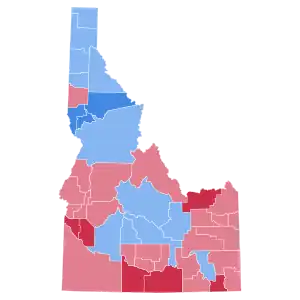 | Twin Falls | 12,171 | 62.15% | 7,413 | 37.85% | 4,758 | 24.30% | 19,584 |