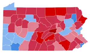 Pennsylvania narrowly voted for Kennedy over the Republican nominee, Vice President Richard Nixon. Kennedy won Pennsylvania by a slim margin of 2.32%, being aided rather than hindered by his Catholic faith owing to the numerical power of his co-religionists in urban Philadelphia, Lackawanna County, and in the industrial areas around Lake Erie.[6] This clearly outnumbered anti-Catholic sentiment in rural areas, which caused him to lose ground vis-à-vis Adlai Stevenson in 16 rural counties.[6] Kennedy became the first Democrat ever to win the White House without York County and the second to win without Columbia County and Berks County.