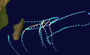 According to the MFR, Emma was a short-lived tropical storm that persisted southeast of Rodrigues,[10] although other warning agencies tracked it for much longer, following it from the Australian basin for 12 days.[11]