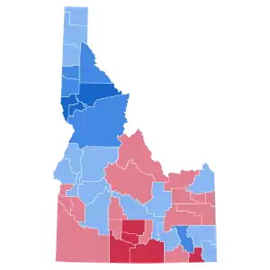| Twin Falls | 7,638 | 39.87% | 11,518 | 60.13% | -3,880 | -20.25% | 19,156 |