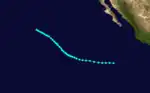 Early on the morning of June 17, a tropical depression formed 185 miles (300 km/h) west of Puerto Angel, Mexico. The depression strengthened into Tropical Storm Wallie. Meanwhile, Wallie was at its peak intensity of 50 mph (85 km/h).[1] Wallie headed northwest and degenerated into an area of low pressure just off the Mexican coast early on June 18.[1] The remnant low made landfall in the near Zihuatanejo, Mexico early on June 18. The low dissipated later that day.[1]