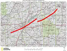 ![]() Official track of the Candlestick Park tornado through central Mississippi | |