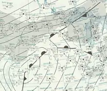 - ↑ An outbreak is generally defined as a group of at least six tornadoes (the number sometimes varies slightly according to local climatology) with no more than a six-hour gap between individual tornadoes. An outbreak sequence, prior to (after) the start of modern records in 1950, is defined as a period of no more than two (one) consecutive days without at least one significant (F2 or stronger) tornado.[8][9][10][11][12][13]