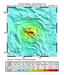 - 1 2 Niazi, M. (1969), "Source dynamics of the Dasht-e Bayāz earthquake of August 31, 1968", Bulletin of the Seismological Society of America, 59 (5): 1857, 1859, Bibcode:1969BuSSA..59.1843N, doi:10.1785/BSSA0590051843