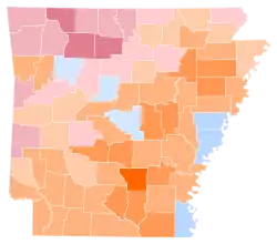 With 38.87% of the popular vote, Arkansas would prove to be Wallace's weakest state that he carried in the 1968 election after Alabama, Mississippi, Louisiana and Georgia.[2] This was the first time since 1872 that Arkansas did not vote for the Democratic candidate, and would be the last time until 2008 that Arkansas did not back the winner of the presidential election. As of 2020, this remains the last time that a Republican has won the presidency without carrying Arkansas.[3]