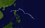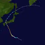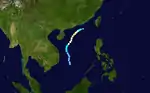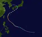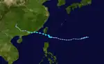 Tropical Storm Ruby formed as a disturbance east of the Philippines. It slowly traveled west-southwest, becoming a tropical storm on the 12th. It crossed the northern part of Luzon before making landfall in China on the 15th.[2] The storm became extratropical over China, and proceeded northwest, crossing Hokkaido before dissipating over the Aleutian Islands.
