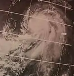 Tropical Storm Clara developed on August 26 southeast of Japan from an upper tropospheric circulation that separated from the Mid-Pacific trough. It quickly strengthened, and became a typhoon on the 27th at 31.9º North, one of only 16 Western Pacific typhoons to reach that strength north of 30ºN. Clara peaked at 95 mph before coming close to Japan, when a shortwave trough forced it sharply eastward. The storm maintained its intensity until becoming extratropical on September 3. An interesting fact about Clara was a reconnaissance mission flown into Hurricane Dot in the central Pacific also flew into Clara on the same flight, an unusual accomplishment not normally seen.