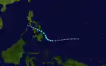 Forming on June 28, Pamela slowly travelled towards the Philippines, and made landfall late on June 30. The tropical storm brought rains and winds to the Philippines, but no major damage was reported. Having greatly weakened after landfall, Pamela degenerated into a remnant low and dissipated over the South China Sea on July 1, just as Category 5 Super Typhoon Olga reached its peak.