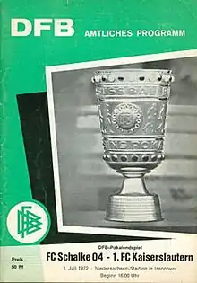 The 1972 DFB-Pokal Final decided the winner of the 1971–72 DFB-Pokal, the 29th season of Germany's knockout football cup competition. It was played on 1 July 1972 at the Niedersachsenstadion in Hanover.[2] Schalke 04 won the match 5–0 against 1. FC Kaiserslautern, to claim their 2nd cup title.