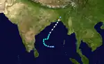 This system developed off the eastern coast of southern India on November 23 and strengthened as it moved to the northeast. The system nearly reached hurricane strength as it made landfall near Chittagong late on November 28. A 10 feet (3.0 m) storm surge accompanied the system's approach to Bangladesh, which inundated several islands offshore. Less than 100 people perished while thousands were left homeless.[3]