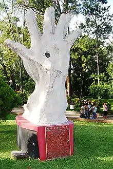 ![]() A monument at the University of El Salvador honoring the massacre's victims | |