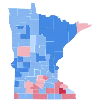 As of the 2020 presidential election, Minnesota has not cast a single electoral vote in favor of a Republican since 1972, making it the state with the longest Democratic streak up to the present day.[3] As of the 2020 presidential election, this is the last election in which Roseau County, Wilkin County, Douglas County, Wadena County, and Pipestone County voted for a Democratic presidential candidate.[4]