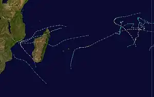 Four storms struck Madagascar in the season between December and March,[5] collectively killing 100 people and causing $250 million (1982 United States dollars) in damage.[6] The storms caused widespread flooding and a state of disaster for four months, compounded by floods in January. About 180,000 people were forced to evacuate, and there were increased levels of flood-related diseases. The storms closed down many roads and destroyed widespread crops, forcing the government to import 400,000 metric tons of rice. After the floods, workers repaired damaged roads and dykes while the government provided relief supplies. However, the ongoing floods strained the Madagascar's resources, and the government appealed for aid to the international community on February 4. The United States Agency for International Development provided nearly $9 million in aid, mostly for rice and rebuilding roads. Other countries donated about $7.5 million in money or relief goods, such as building materials, food, clothing, and medicine.[7]