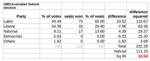 • Prior to 1984 the AEC did not undertake a full distribution of preferences for statistical purposes. The stored ballot papers for the 1983 election were put through this process prior to their destruction. Therefore, the figures from 1983 onwards show the actual result based on full distribution of preferences. The 1983 swing of approximately 3.6 points is based on a pure deduction of one result from the other.