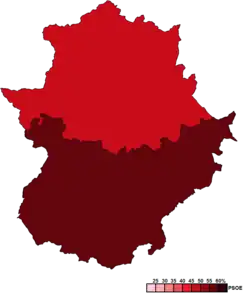 ![]() Constituency results map for the Assembly of Extremadura | |||||||||||||||||||||||||||||||||||||||||||||||||||||||||||||