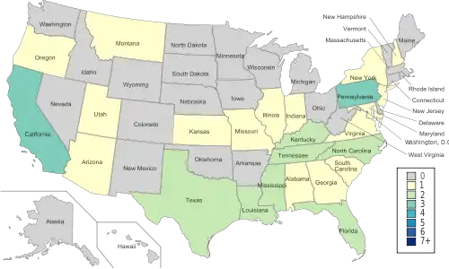 The thirty-six teams represented twenty-four states, plus Washington, D.C. California and Pennsylvania had the most teams with three each. Twenty-six states did not have any teams receiving bids.[6]