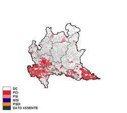 | Province | DC | PCI | PSI | MSI | PRI | PSDI | Greens | PLI | DP | Total |