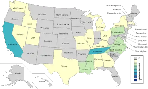| 4 | Tennessee | Memphis, Middle Tenn, Tennessee, Tennessee Tech |