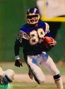 The Chargers quickly trimmed their list of non-union players once the regulars returned. On 20 October, they cut 35 replacement players, retaining 19 on their active roster and three more on injured reserve.[91] A further seven were waived the following week, together with four members of the pre-strike squad, as NFL teams were given increasingly tight squad limits to meet.[92] By 14 November, the pre-strike limit of 45 players had been restored, with nine replacement Chargers remaining.[93] Patterson won a starting role in 1987,[94] and remained with the team through the 1989 season,[95] while Les Miller and Joe Phillips both started games for the Chargers as late as 1990.[96][97]