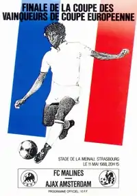 The 1988 European Cup Winners' Cup Final was a football match contested between Mechelen of Belgium and the defending champions, Ajax of the Netherlands. It was the final match of the 1987–88 European Cup Winners' Cup and the 28th European Cup Winners' Cup final. The final was played at Stade de la Meinau in Strasbourg, France, on 11 May 1988. Mechelen won the match 1–0 thanks to a goal by Piet den Boer who headed the ball low into the net after a cross by Eli Ohana from the left.