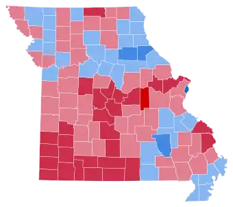 | Laclede | 6,070 | 63.65% | 3,442 | 36.09% | 24 | 0.25% | 2,628 | 27.56% | 9,536 |