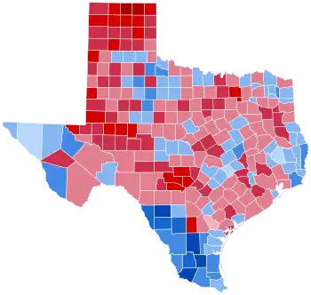 Texas voted for Bush by a solid 12.6% margin. Texas had been considered a competitive, albeit Republican-leaning, state in the run-up to the election.[2]