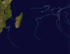 | Bella | January 18 – February 4 | Tropical Cyclone | 155 km/h (96 mph) | 936 hPa (27.6 inHg) | Rodrigues | Unknown | 36 | [8] |