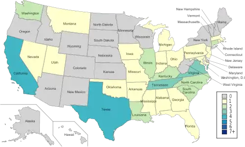 The forty-eight teams came from thirty states, plus Washington, D.C. California and Texas had the most teams with four each. Twenty states did not have any teams receiving bids.[7]
