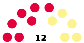 Party Seats Gains Losses Net gain/loss Seats % Votes % Votes +/−