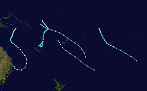 Vania November 12 – 18 Category 2 tropical cyclone 100 km/h (65 mph) 980 hPa (28.94 inHg) Solomon Islands, Vanuatu, New Caledonia, Fiji Unknown Unknown [5]