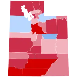 As of the 2020 presidential election, this is the last election in which Tooele County and Carbon County voted for a Democratic presidential candidate.[3] This also marked the first time since statehood that a president won two terms without ever carrying Utah.