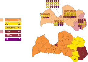 All 100 seats in the Saeima 51 seats needed for a majority | |||||||||||||||||||||||||||||||||||||||||