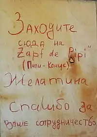 The interactive work "Zapf de Pipi" by the Austrian art group Gelitin turned out to be the most radical. The object was a wooden toilet stall protruding from the window onto the street, into the courtyard of the museum, where there were severe February frosts. Anyone could walk into the booth and urinate. In the courtyard, a stalactite of a characteristic yellow color hung down, which was the final piece of art. The artists dedicated their brainchild to Marcel Duchamp, who exhibited a urinal as an art object, and Joseph Beuys, who declared that everyone is an artist.[23] Later it was reported that the "stalactite" was prepared by the artists themselves, a few days before the opening of the exhibition, pouring lightly brewed tea on a specially fixed wooden pin.[27]