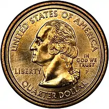 The 2000 Sacagawea dollar – Washington quarter mule is an error coin featuring the obverse of a Washington quarter (specifically a 50 State quarter) and the reverse of a Sacagawea dollar struck on a gold-colored dollar coin planchet. It is one of the first known authentic mule coins to be released into circulation by the United States Mint.[2]