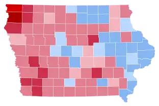 | Iowa | 3,230 | 43.57% | 3,894 | 52.53% | 289 | 3.90% | -664 | -8.96% | 7,413 |