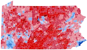 Pennsylvania was won by Vice President Al Gore by a 4.17% margin of victory. However, voter enthusiasm for both candidates was generally low throughout the campaign. Gore failed to capture Clinton's appeal in strongly Democratic regions such as Pittsburgh and Scranton, and thus carried these areas by a smaller number than his predecessor. However, opposition to George W. Bush was particularly strong in the suburban counties of Philadelphia; although these areas at the time were typically Republican leaning, they featured a strong culturally liberal bent, and thus Bush was unable to appeal to voters. Bush support was particularly strong in rural, central Pennsylvania, where the Texas Governor appealed to Evangelical voters and where Gore's connection to gun control policies was strongly rejected. Marginal wins in both of the state's metropolitan areas helped the Vice President to capture the state.[1] This was the first election since 1968 that the candidate who won Pennsylvania did not win the general election, and only the fourth time that has happened since 1916. As of the 2020 presidential election, this is the last election in which Greene County, Mercer County, and Lawrence County voted for the Democratic candidate.