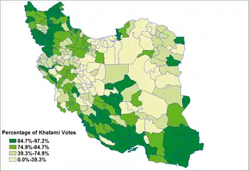 ![]() Percentage of votes that went to Mohammad Khatami per county | |||||||||||||||||
