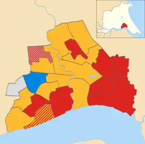 Hull was seen as one of the key contests in the 2002 local elections with the Liberal Democrats seen as the main challengers to Labour.[3] Labour had run Hull continuously since 1945, apart from a brief period from 1969 to 1971 when the Conservatives had taken control, but they were seen as vulnerable in this election.[3] As well as the Liberal Democrats, who with 10 seats were the main opposition before the election, the Conservatives stood in 31 of the 59 seats that were being contested.[3] Divisions within the local Labour party also meant some councillors stood in the election as independents.[3]