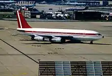 On 4 July 2002 a Boeing 707-123B operated by Prestige Airlines and owned by New Gomair, crashed during an emergency landing at Bangui Airport. 28 people on board were killed and two survived.[1] The flight was bound to Brazzaville, but the crew decided to divert to Bangui when the landing gear had not retracted.
