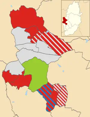 The results saw Labour lose their majority on the council after independents gained 12 seats and Labour lost 15 seats.[3]