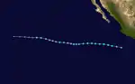 The 2003 Pacific hurricane season was the first season to feature no major hurricanes – storms of Category 3 intensity or higher on the Saffir–Simpson hurricane wind scale (SSHWS) – since 1977. The season officially began on May 15, 2003 in the Eastern Pacific, and on June 1 in the Central; both ended on November 30. These dates, adopted by convention, historically describe the period in each year when most tropical cyclogenesis occurs in these regions of the Pacific.[1] The season would feature 16 tropical storms, 7 of which would intensifiy into hurricanes, which was then considered an average season. Damage across the basin reached US$129 million, and 23 people were killed by the storms.[nb 1]