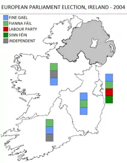 Since the 1999 European Parliament election Ireland's entitlement had fallen from 15 seats to 13 seats due to European Union expansion and some constituencies boundaries and names were changed.