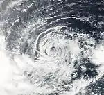 After developing, the system moved northwestward due to a ridge over India.[25] The IMD upgraded the depression to Cyclonic Storm Agni late on November 29 and further to a severe cyclonic storm the next day.[1] The JTWC also upgraded Agni to the equivalent of a minimal hurricane, estimating 120 km/h (75 mph). Wind shear and dry air caused the storm to weaken.[25] After Agni turned westward, the IMD downgraded it to a depression and later remnant low on December 2,[1] although the JTWC tracked it for another day, issuing their final advisory while Agni was about 450 km (275 mi) south-southeast of Cape Guardafui—the easternmost point of the Horn of Africa.[25] The remnants moved ashore at eastern Somalia, before turning to the south and dissipating on December 5.[2]