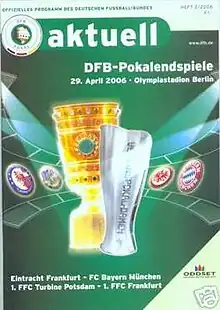 The 2006 DFB-Pokal Final decided the winner of the 2005–06 DFB-Pokal, the 63rd season of Germany's premier knockout football cup competition. It was played on 29 April 2006 at the Olympiastadion in Berlin.[3] Bayern Munich won the match 1–0 against Eintracht Frankfurt via a goal from Claudio Pizarro, giving them their 13th cup title.