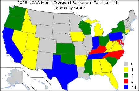 - ↑ "2008 NCAA tournament selections". March 16, 2008. Retrieved February 17, 2016.
