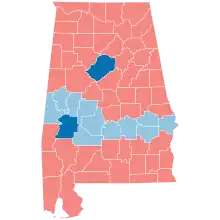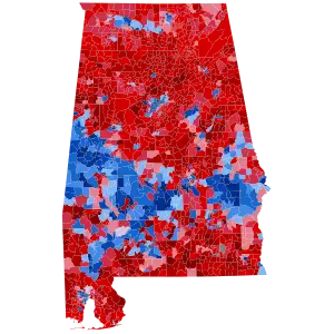 Voting in Alabama, like in other states of the Deep South, was heavily polarized by race. According to exit polls, 98% of black Alabamians voted Democratic while 88% of white Alabamians voted Republican.[19] Obama's 12 percent showing among white Alabamians was easily his worst in the nation, and prevented him from having any realistic chance of carrying the state.[20] Ultimately, McCain won by running up massive landslides in the state's suburban areas; several Birmingham, Montgomery and Mobile suburbs gave McCain over 70 percent of the vote. The old-line Dixiecrats in these areas began splitting their tickets as early as the 1940s; apart from Carter, some of these areas haven't supported a Democrat for president since Adlai Stevenson II in 1952.