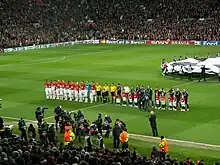 ![]() Teams lining up for the UEFA Champions League game against Bayern Munich, 7 April 2010 | ||||