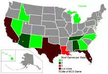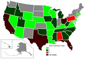 ![]() Bowl sites by state | |||||||||||||||||||||||||||||||||||||||||||||||||||||||||