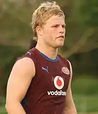 ![]() Daniel Rich, winner of the 2009 AFL Rising Star award, during 2008 | |