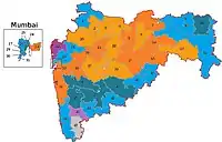 | Region | Total seats | Indian National Congress | Shiv Sena | Bharatiya Janata Party | Nationalist Congress Party | Others | ||||||||